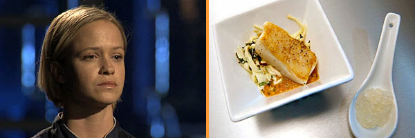 nomnomnom - In the TV Guide interview, Lindsay said "Tom made a comment about that when we were in the kitchen — that I chose halibut because of what happened with Beverly and I was like, "Oh my God! I didn't even think about it!" I really didn't. I got to Whole Foods and I really wanted to use black cod, but they didn't have enough, so I went with halibut. I didn't do it out of spite. It was the only fish they had enough of for 150 people!"